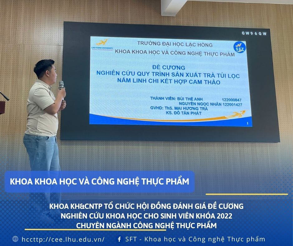 Ngày 5/9/2025, Khoa Khoa học và Công nghệ Thực phẩm, Trường Đại học Lạc Hồng đã tổ chức buổi bảo vệ đề cương nghiên cứu khoa học cho sinh viên khóa 2022, chuyên ngành Công nghệ thực phẩm.