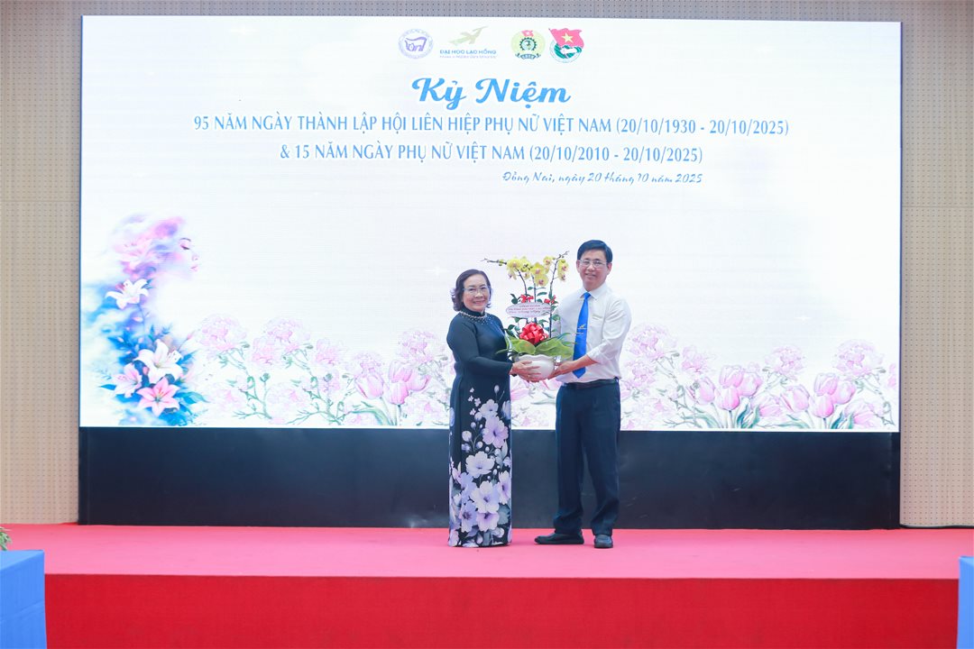 Trong không khí hân hoan của cả nước hướng về kỷ niệm 95 năm Ngày thành lập Hội Liên hiệp Phụ nữ Việt Nam (20/10/1930 – 20/10/2025) và 15 năm Ngày Phụ nữ Việt Nam (20/10/2010 – 20/10/2025), sáng ngày 20/10/2025, tại Hội trường A301 – Cơ sở 1, Công đoàn Trường Đại học Lạc Hồng phối hợp cùng Chi hội Nữ tri thức và Đoàn Thanh niên đã long trọng tổ chức Lễ kỷ niệm Ngày Phụ nữ Việt Nam 20/10 – một chương trình đầy ý nghĩa, ấm áp và đong đầy cảm xúc.