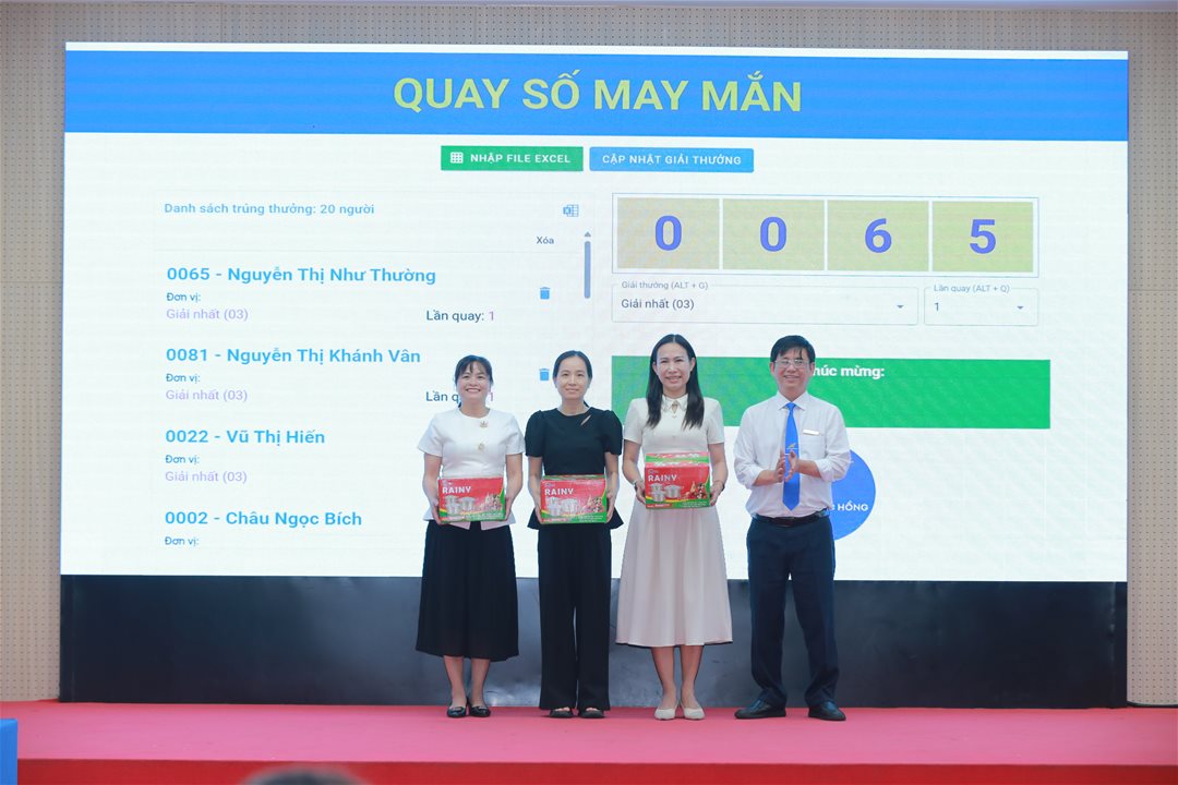 Thầy Hiệu trưởng trao tặng 03 giải Nhất quay số may mắn cho các Quý Cô may mắn