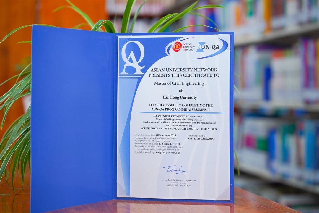 Một trong những thành tựu tự hào nhất năm 2025 là Chương trình đào tạo Thạc sĩ của Khoa Kỹ thuật Công trình chính thức đạt chuẩn kiểm định chất lượng giáo dục Đông Nam Á (AUN-QA).