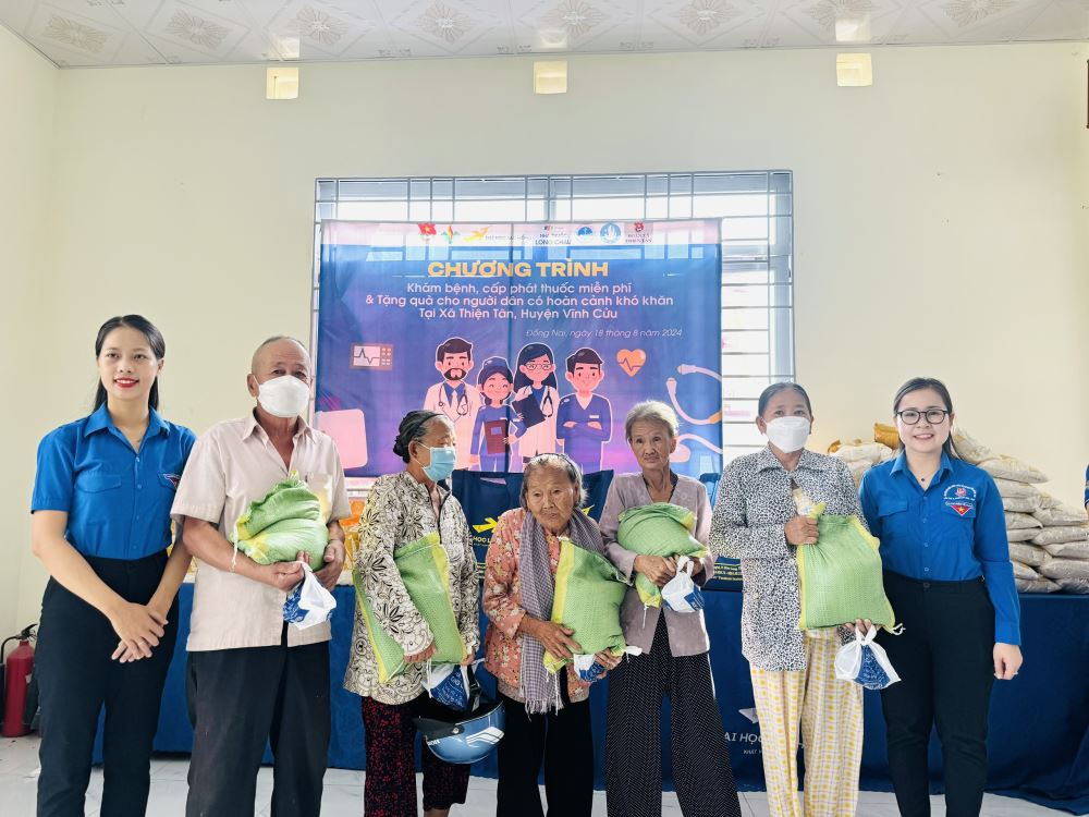 On the morning of August 18, 2024, the LHU Student Union collaborated with Long Chau Pharmacy, the Vinh Cuu District Young Doctors Club, and Thien Tan Commune Youth Union to successfully organize a program offering free health checkups, medicine, and gifts to 100 vulnerable households in Hamlet 6 and 7, Thien Tan Commune, Vĩnh Cửu District.