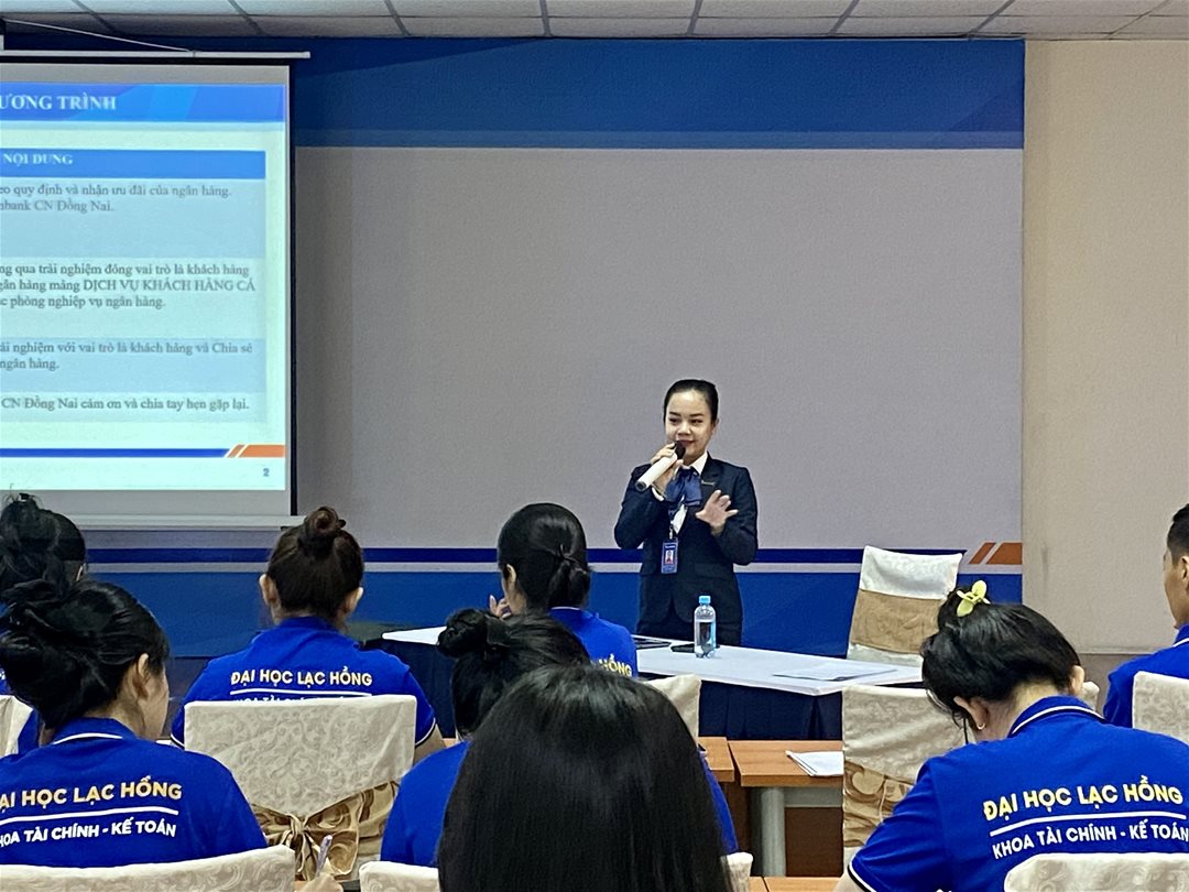 Sáng ngày 11/9/2025, Khoa Tài chính – Kế toán, Trường Đại học Lạc Hồng đã tổ chức chuyến tham quan – kiến tập thực tế tại Ngân hàng TMCP Sài Gòn Thương Tín (Sacombank) – Chi nhánh Đồng Nai cho sinh viên lớp 24NH111 – ngành Tài chính Ngân hàng.