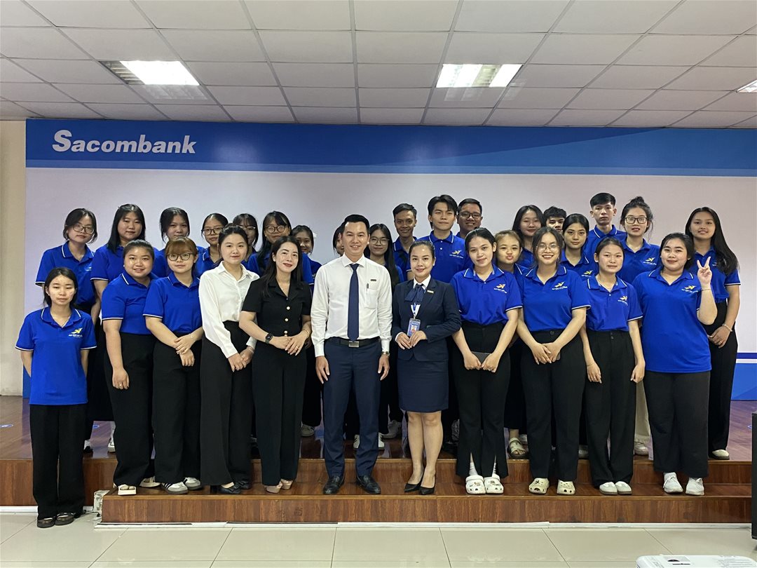 Tại buổi tham quan, sinh viên đã được đại diện Sacombank giới thiệu khái quát về lịch sử phát triển, cơ cấu tổ chức và các dịch vụ tài chính – ngân hàng hiện có. Đặc biệt, các em còn được lắng nghe những chia sẻ thiết thực về cơ hội thực tập, việc làm và định hướng nghề nghiệp trong tương lai.