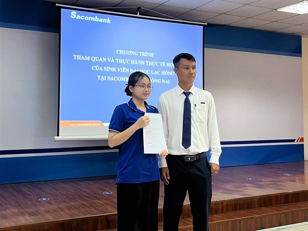 Cuối chương trình, đại diện Khoa Tài chính – Kế toán – Trường Đại học Lạc Hồng đã gửi lời cảm ơn chân thành và trao quà lưu niệm tới Sacombank Chi nhánh Đồng Nai. Các bạn sinh viên cũng lưu giữ những khoảnh khắc đáng nhớ qua các bức ảnh kỷ niệm.