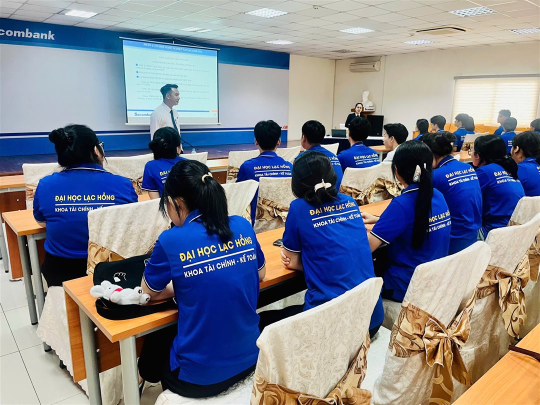 Sáng ngày 17/9/2025, Khoa Tài chính – Kế toán, Trường Đại học Lạc Hồng đã tổ chức chuyến tham quan, học tập thực tế tại Ngân hàng TMCP Sài Gòn Thương Tín (Sacombank), Chi nhánh Đồng Nai dành cho sinh viên lớp 24NH112, ngành Tài chính – Ngân hàng.