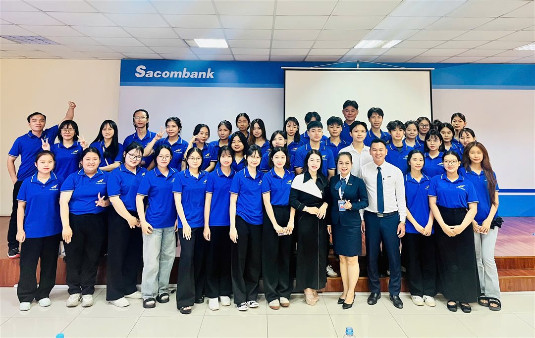 Tại buổi tham quan, đại diện Sacombank đã giới thiệu tổng quan về lịch sử phát triển, cơ cấu tổ chức, cũng như các dịch vụ tài chính – ngân hàng đang được cung cấp. Các em sinh viên được lắng nghe những chia sẻ thiết thực liên quan đến cơ hội thực tập, việc làm cũng như định hướng nghề nghiệp trong tương lai.