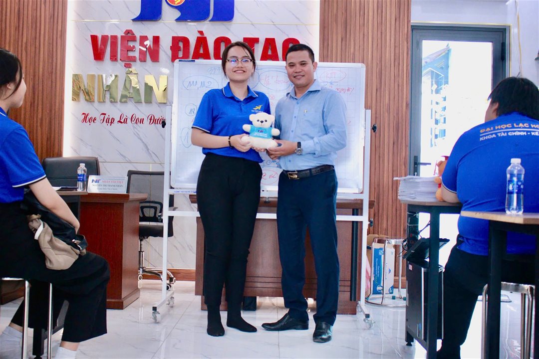 Kết thúc buổi tham quan, đại diện Khoa Tài chính – Kế toán đã trao tặng quà lưu niệm và gửi lời cảm ơn chân thành đến Ban lãnh đạo Công ty Nhân Tài Việt vì sự hợp tác và hỗ trợ nhiệt tình trong việc đồng hành cùng hoạt động đào tạo của Khoa.