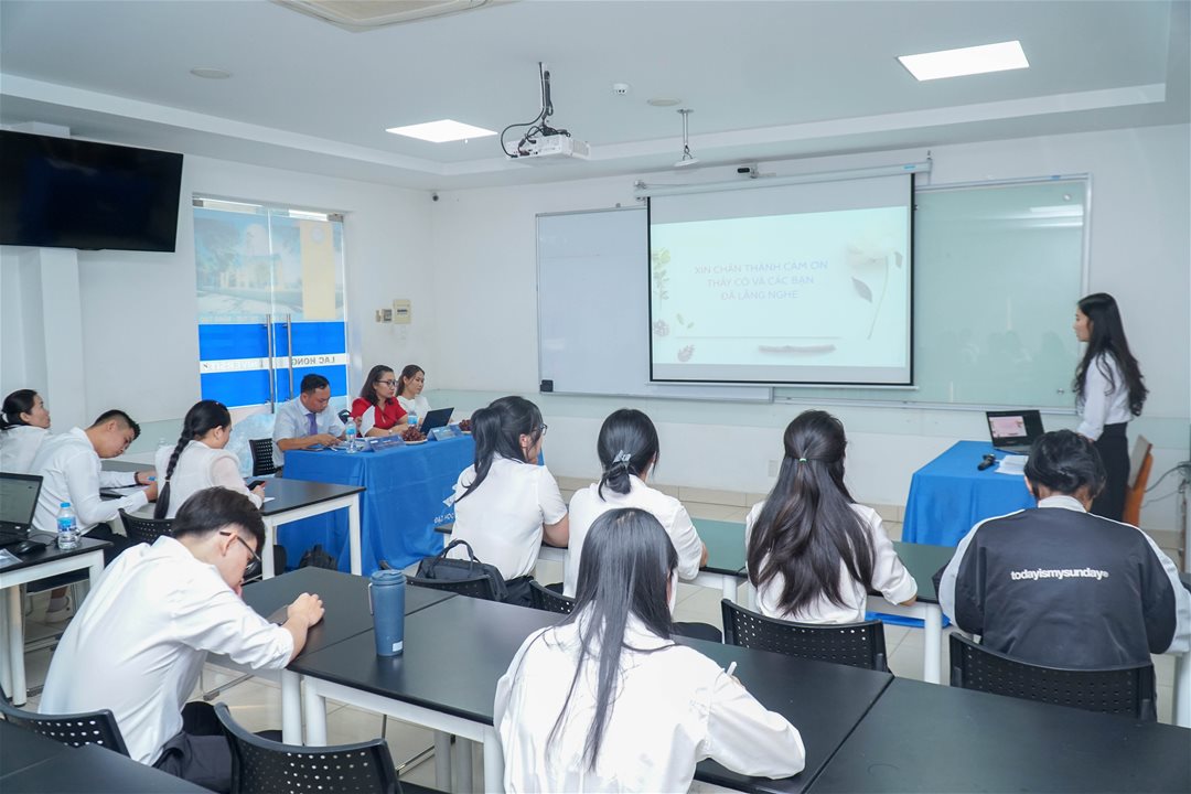 Throughout the reporting schedule, students presented their research results, including theoretical foundations, empirical analyses, and proposed solutions across the fields of Finance–Banking, Accounting, Logistics, and Supply Chain Management. The subcommittees provided detailed academic feedback, offering constructive recommendations to help students strengthen scientific research skills, critical thinking, and scholarly presentation abilities.