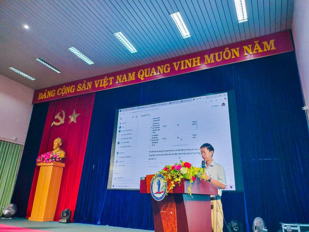 Tiếp nối chương trình, hội thảo đi sâu vào chủ đề "Ứng dụng Trí tuệ Nhân tạo (AI) trong Dạy và Học". Các nội dung được trình bày tập trung vào việc khai thác AI để hỗ trợ đa dạng các hoạt động sư phạm, bao gồm: soạn thảo bài giảng trực quan (slide); tạo dựng hình ảnh và video mô phỏng sinh động; thiết kế các hoạt động dạy học tương tác; rà soát và hoàn thiện đề cương chi tiết môn học; xây dựng hệ thống câu hỏi phục vụ kiểm tra, đánh giá; và cung cấp nhận xét, phản hồi cá nhân hóa cho người học thông qua trợ lý ảo AI. Những ứng dụng này hướng đến mục tiêu kép: tối ưu hóa hiệu quả làm việc của đội ngũ giảng viên và nâng cao chất lượng trải nghiệm học tập của sinh viên trong kỷ nguyên giáo dục số.