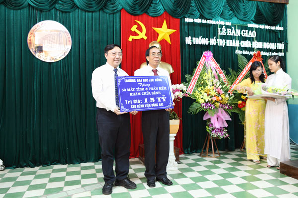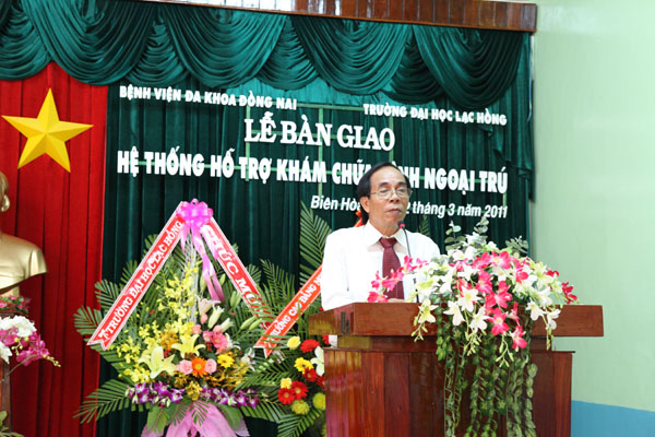 Dated 12 March 2011, at Dong Nai Polyclinic Hospital, the handover ceremony of the software "Outpatient Medical Treatment” took place. Attending the ceremony were Mr. Tran Huong – Vice Director of Representative Office of the southern Ministry of Education and Training in Ho Chi Minh, Ms.Vu Thi Dinh – Vice Chairman of public health Union, Dr. Tran Hanh - Rector of Lac Hong University, Dr. Phan Huy Anh Vu - Director of Dong Nai Polyclinic Hospital and representatives of the provincial colleges, departments and branches.