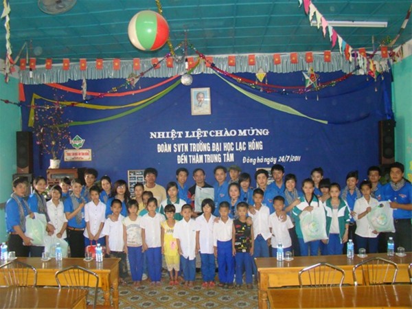 In the 2011 summer voluntary campaign, in addition to activities held in Da Ngoi hamlet, Con Co island, Truong Son National Martyrs’ Cemetery,… the Lac Hong University's Youth Union took part in social and charity activities at center for provincial blinds’ Association, Quang Tri province’s Mai Am Tinh Hong, Xuan Phu guidance and vocational training center for children - Hue city and Phuoc Dong charity house – Nha Trang city.