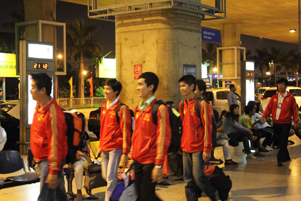 Afternoon of August 30, representatives of Dong Nai province and leaders of Lac Hong University along with Robocon lovers warmly welcomed Robocon team coming back from AUB Asia Pacific Robot Contest held in Thailand. After five days of competing in Thailand, the team has arrived in Tan Son Nhat airport in Ho Chi Minh City in expectation and welcome of all people.