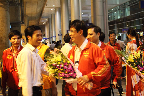 The Robocon team coming back from AUB Asia Pacific Robot Contest held in Thailand was given a warm welcome on August 30 at Tan Son Nhat airport in Ho Chi Minh City with the presence of representatives of Dong Nai province and leaders of Lac Hong University along with Robocon lovers.