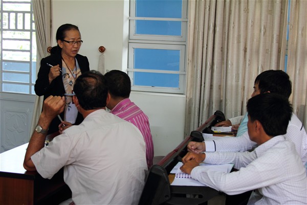 Mr. Luu Ngoc Cuong and Ms Le Thi Hieu give the student specific instructions.