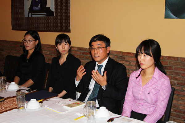 Consul General of Korea Yoo Kwang Yol introduces the project to present books to universities.