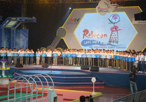 The final round of Robocon Vietnam 2012 was kicked off at the Military Zone 7 Stadium – Ho Chi Minh City on May 8. The contest saw the participation of 32 teams selected from qualifying rounds in three areas over the country, North, South and Central. The 32 best teams have competed over the next round of 1/32, 1/16 and 1/8 to choose the champion of Vietnam Robocon 2012.  The champion team will represent Vietnam to participate in the Asia Pacific Robot Contest in Hong Kong (China) in August 2012.