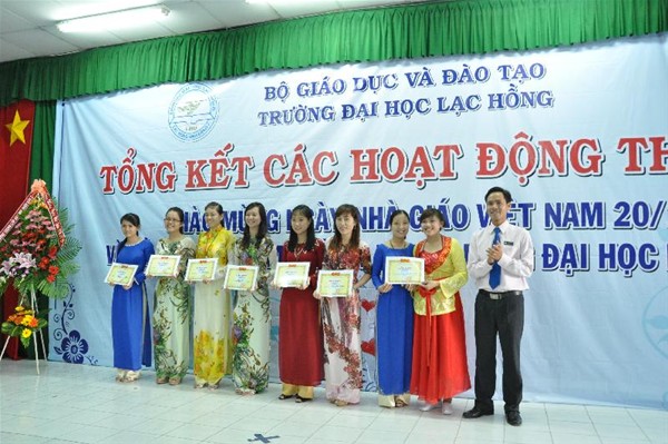 On the occasion of the 30th anniversary of Vietnamese Teachers’ Day (November 20, 1982 – November 20, 2012), a meeting was held on November 19, 2012 at A301 to sum up activities and to honor Teachers for their outstanding achievements by the Trade Union Executive Committee in cooperation with chapters. Earlier, a series of activities have been held in Lac Hong University to celebrate the Vietnamese Teachers’ Day and and mark the 15th founding anniversary of Lac Hong University.