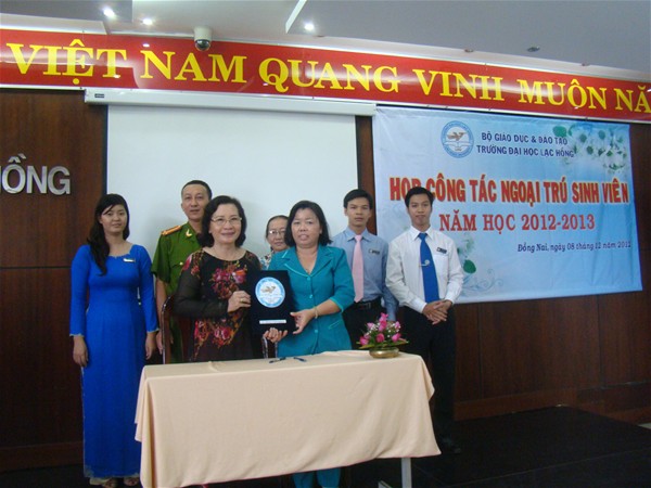 In the morning of 8th December, 2012 a meeting was held at Lac Hong University to discuss day-students mission for 2012 – 2013. On behalf of Lac Hong University, there was the present of Vice Rector Meritorious Teacher Dr. Nguyen Thi Thu Lan, representatives from Student Affairs, dormitory, Youth Union and faculties. Attending the meeting were also Ms. Nguyen Thi Thu Tam – Chairwoman of Buu Long ward People’s Committee, Mr. Pham Duy Hung – Deputy Head of Buu Long ward Public Security, Dormitory Management Board of Dong Nai College of Decorative Arts and more than 40 owners of boarding houses in Buu Long ward.