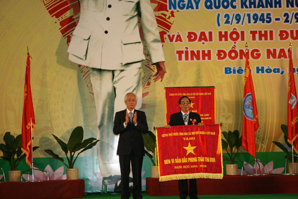 At the ceremony, Mr. Vo Van Mot – Chairperson of Dong Nai provincial People's Committee made a commemorative speech on the 65th  anniversary of  National Day of the Socialist Republic of Vietnam, jointly reviewing our nation’s gloriously historical traditions in August Revolution 1945. After that, Mr. Le Mai Thanh - Deputy Director of Department of Interior Affairs, Permanent Vice Chairman of Dong Nai provincial Emulation and Reward Council approved reports on the patriotic emulation movements in the past five years (2005-2010) and mission directions next five years (2010-2015).