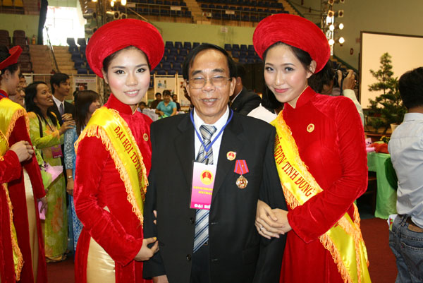 Dr. Tran Hanh had his photo taken with two LHU former students at the Congress
