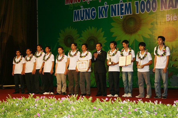 After the achievement reporting ceremony at Tran Bien Temple of Literature, Robocon Lac Hong was on a parade to provincial square to attend the ceremony of the 9th Dong Nai Provincial Party Congress and welcome 1000 year anniversary of Thang Long, Hanoi.