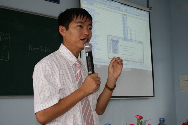 According to Ms Le Thi Ngoc Huong - Vice Dean of English Department, data-processing abilities in scientific research of students of English in particular and students of Foreign Languages in general are not flexible. To overcome this weakness and also to help the students master data processing methods in the research process, the teachers in Managing Board of English Department invited Dr. Nguyen Van Tan – Head of the Department of Scientific Research- Postgraduate to guide students of the courses 2006 and 2007 SPSS16.0 software. This is a piece of software helping users perform statistical analysis more easily. With simple operations, the users can create frequency tables, percentage, average and standard deviation, histogram, statistical tests and other tests.