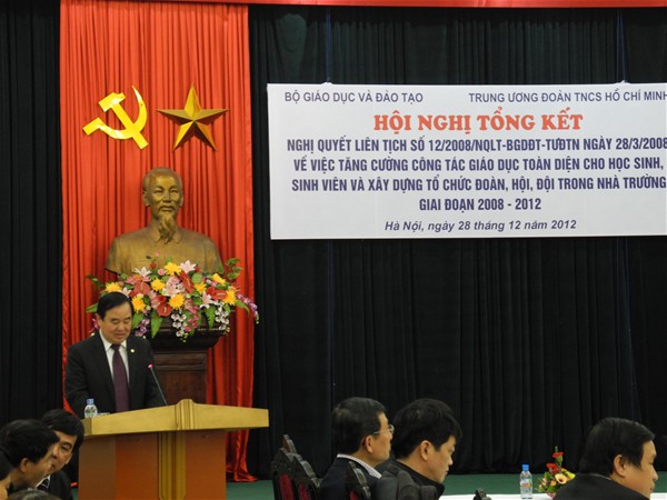 Ngày 28/12/2012, tại Hà Nội, Bộ giáo dục & Đào tạo đã tổ chức Hội nghị tổng kết về việc thực hiện Nghị quyết liên tịch số 12/2008/ NQLT-BGDĐT-TWĐTN ngày 28/3/2008 của Bộ giáo dục & Đào tạo và Trung ương Đoàn thanh niên cộng sản Hồ Chí Minh về tăng cường công tác giáo dục toàn diện cho học sinh, sinh viên và tổ chức đoàn, hội, đội trong nhà trường giai đoạn 2008-2012. Thầy Vũ Văn Tuấn – Phó Trưởng phòng Công tác sinh viên đại diện nhà trường tham dự Hội nghị.