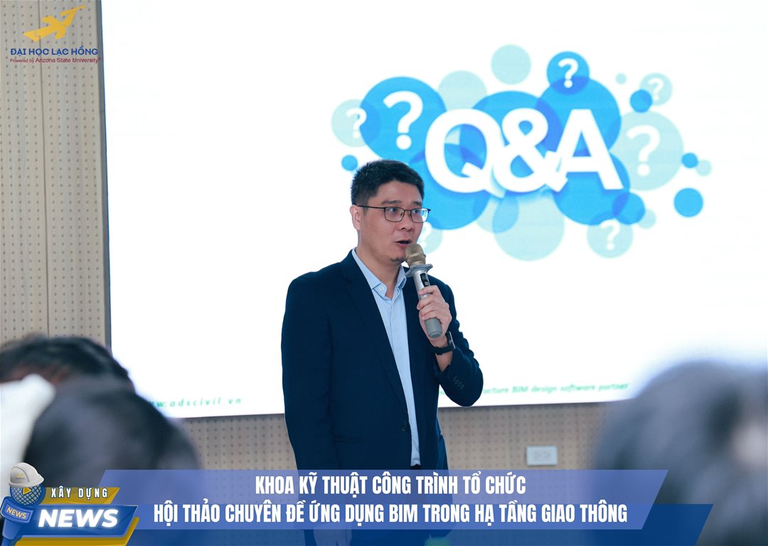 Nhiều câu hỏi thực tiễn được đặt ra và giải đáp trực tiếp bởi chuyên gia, giúp người tham dự hiểu rõ hơn về quy trình ứng dụng BIM trong quản lý – thiết kế hạ tầng giao thông hiện đại.