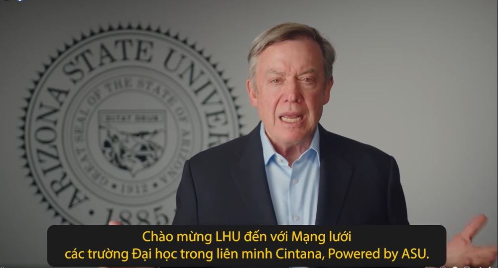 “Chào mừng Đại học Lạc Hồng đến với mạng lưới các trường Đại học trong liên minh Cintana, Powered by ASU. Chúng tôi là trường đại học đổi mới hàng đầu tại Hoa Kỳ. Chúng tôi đã tìm những cách hoàn toàn mới mẻ để cái tiến, và chúng tôi vô cùng phấn khởi khi được hợp tác với chính phủ Việt Nam, với các trường tư thục hàng đầu và cùng nhau thúc đẩy sự hợp tác này. Thế giới cần những trường đại học đổi mới và năng động hơn, linh hoạt, hiệu quả và thành công hơn. Vì vậy chúng tôi vô cùng hào hứng về điều này. Chúng tôi rất phấn khởi về cơ sở vật chất của LHU. Chúng tôi cũng rất hào hứng với chiến lược nâng cap chất lượng trải nghiệm của sinh viên LHU. Chúng tôi mong muốn được hợp tác chặt chẽ với LHU theo những cách mà qua đó chúng ta có thể xây dựng một thế giới tốt đẹp hơn, một nền kinh tế vững mạnh hơn và mang lại thịnh vượng cho cộng đồng. Chúng tôi rất hân hoan chào đón việc hợp tác với LHU”. - Ông Michael Crow – Chủ tịch Đại học Bang Arizona, Hoa Kỳ phát biểu trong sự kiện Công bố hợp tác chiến lược Đại học Lạc Hồng, Arizona State University và Cintana Education.